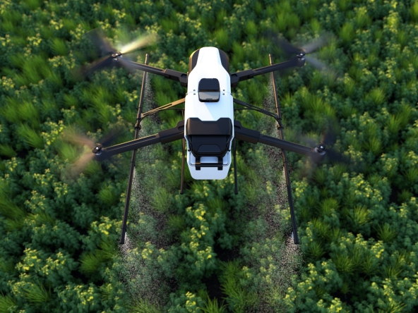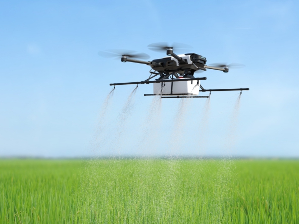 ड्रोन उर्वरक, पोषक तत्व और फसल सुरक्षा उत्पादों को सटीक सटीकता के साथ पहुंचाते हैं।